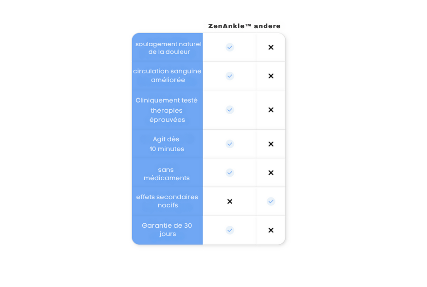 Grâce à l’amélioration de la circulation sanguine, ZenAnkle™ permet l’élimination des déchets, des substances inflammatoires et des excès deliquide.
